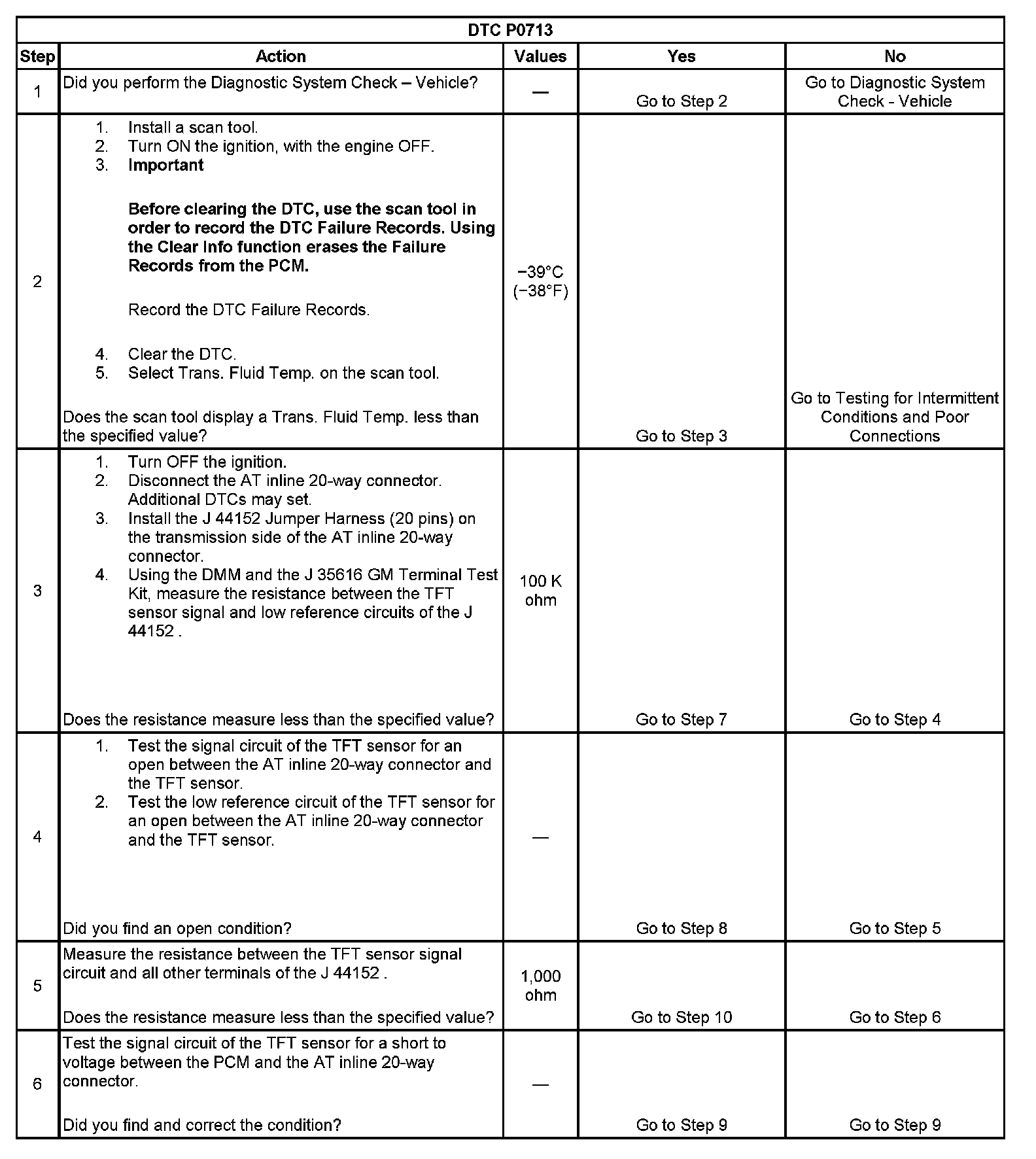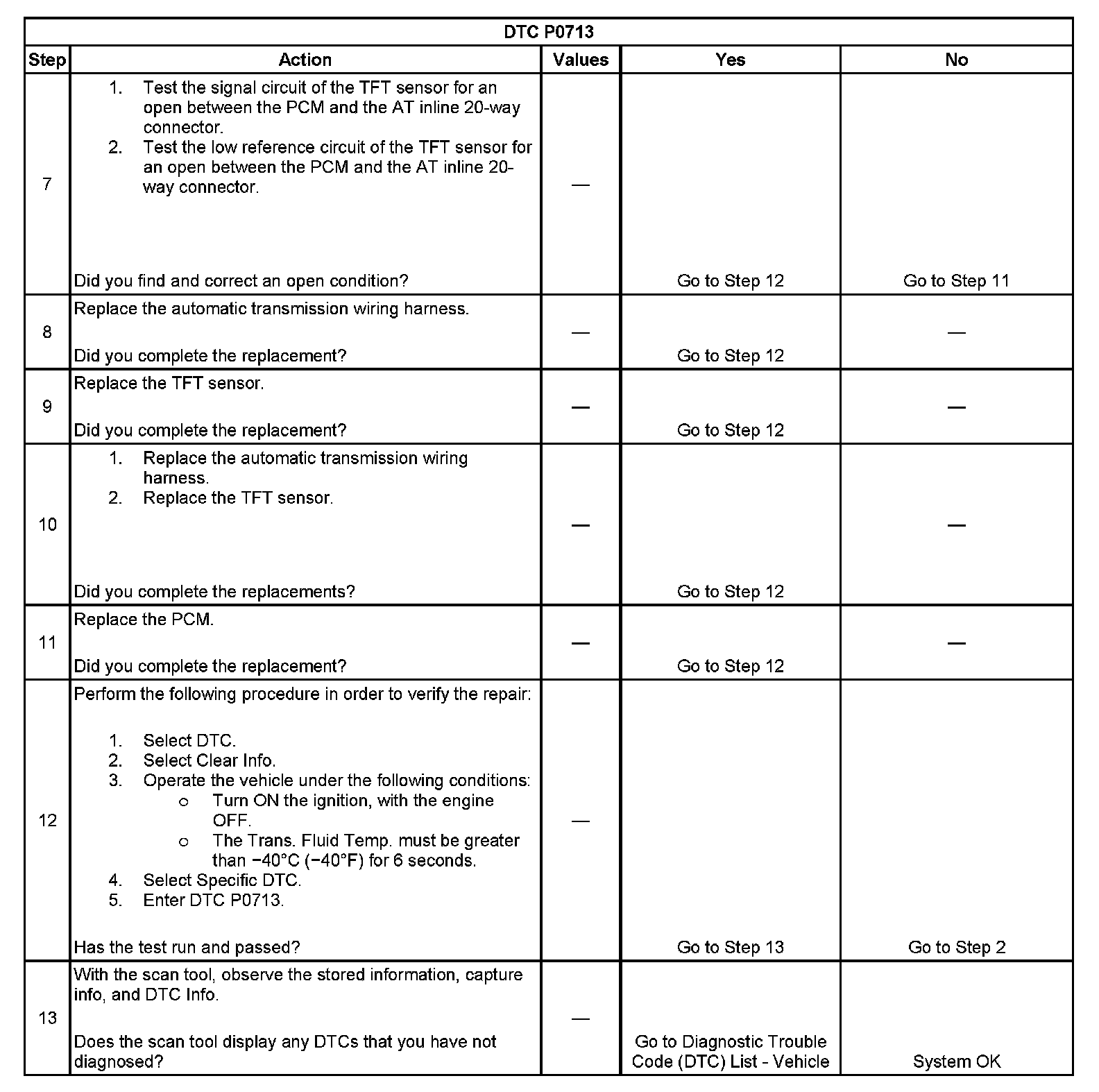 ^ The PCM stores DTC P0713 in PCM history.