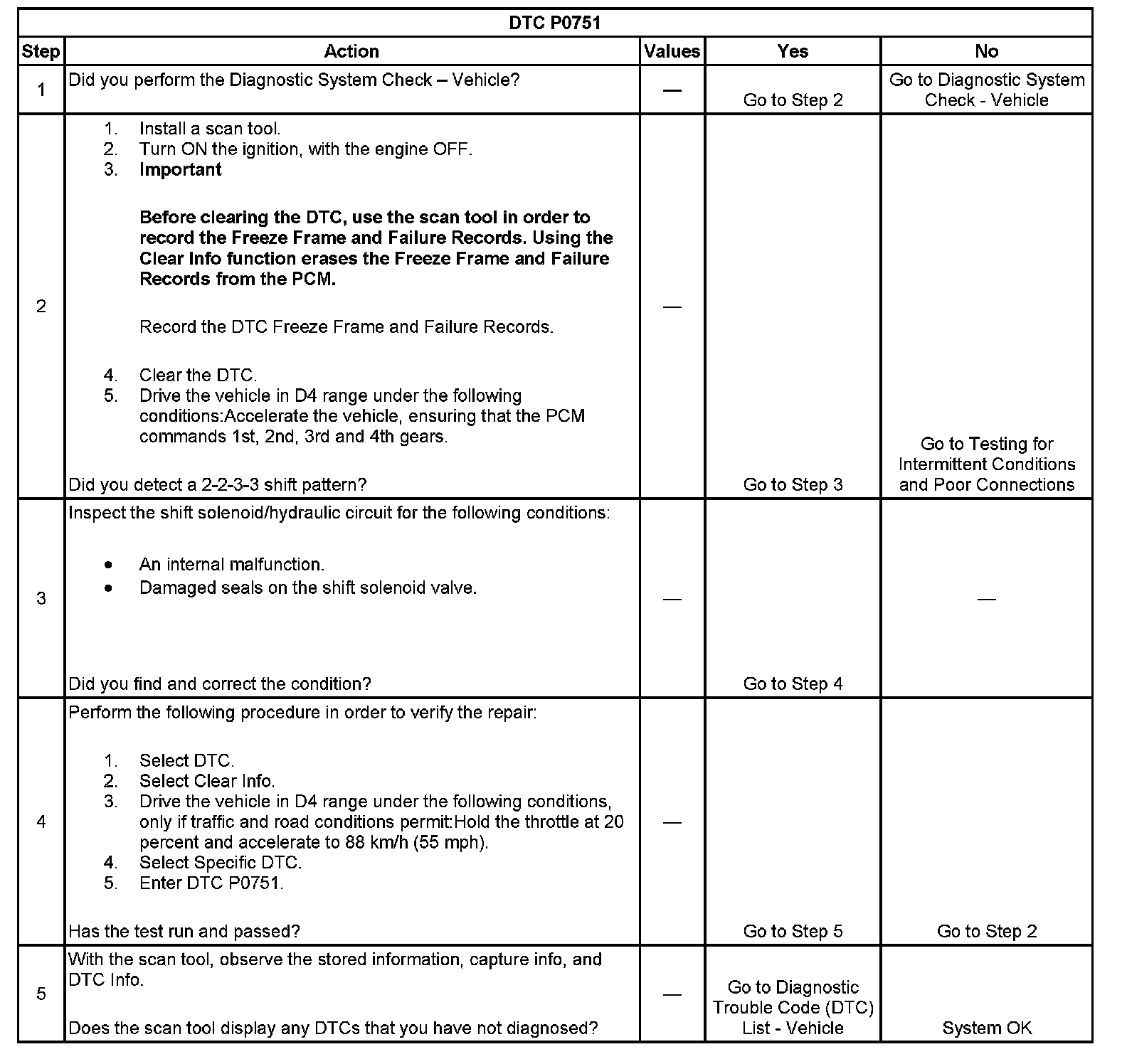 ^ The PCM stores DTC P0751 in PCM history.