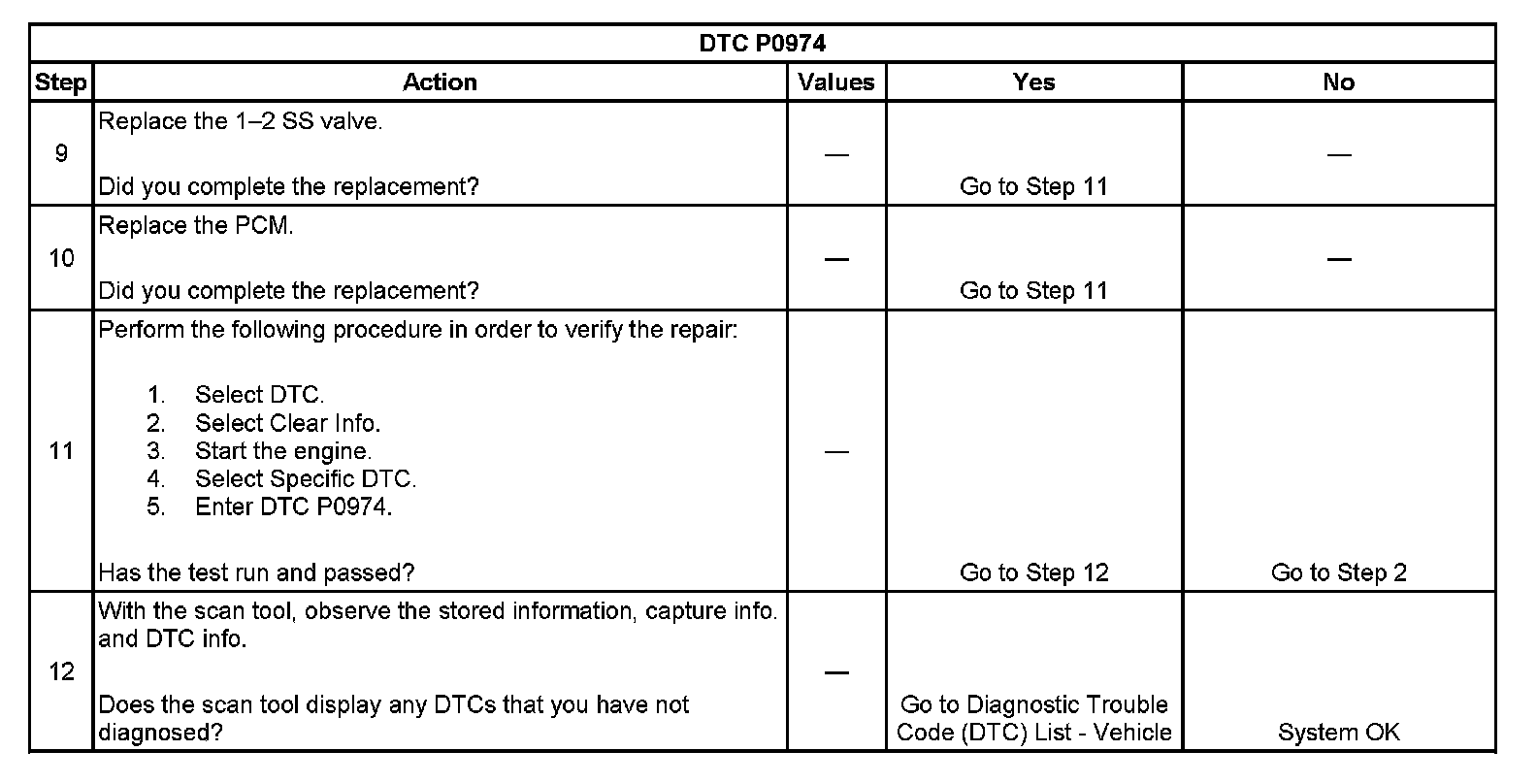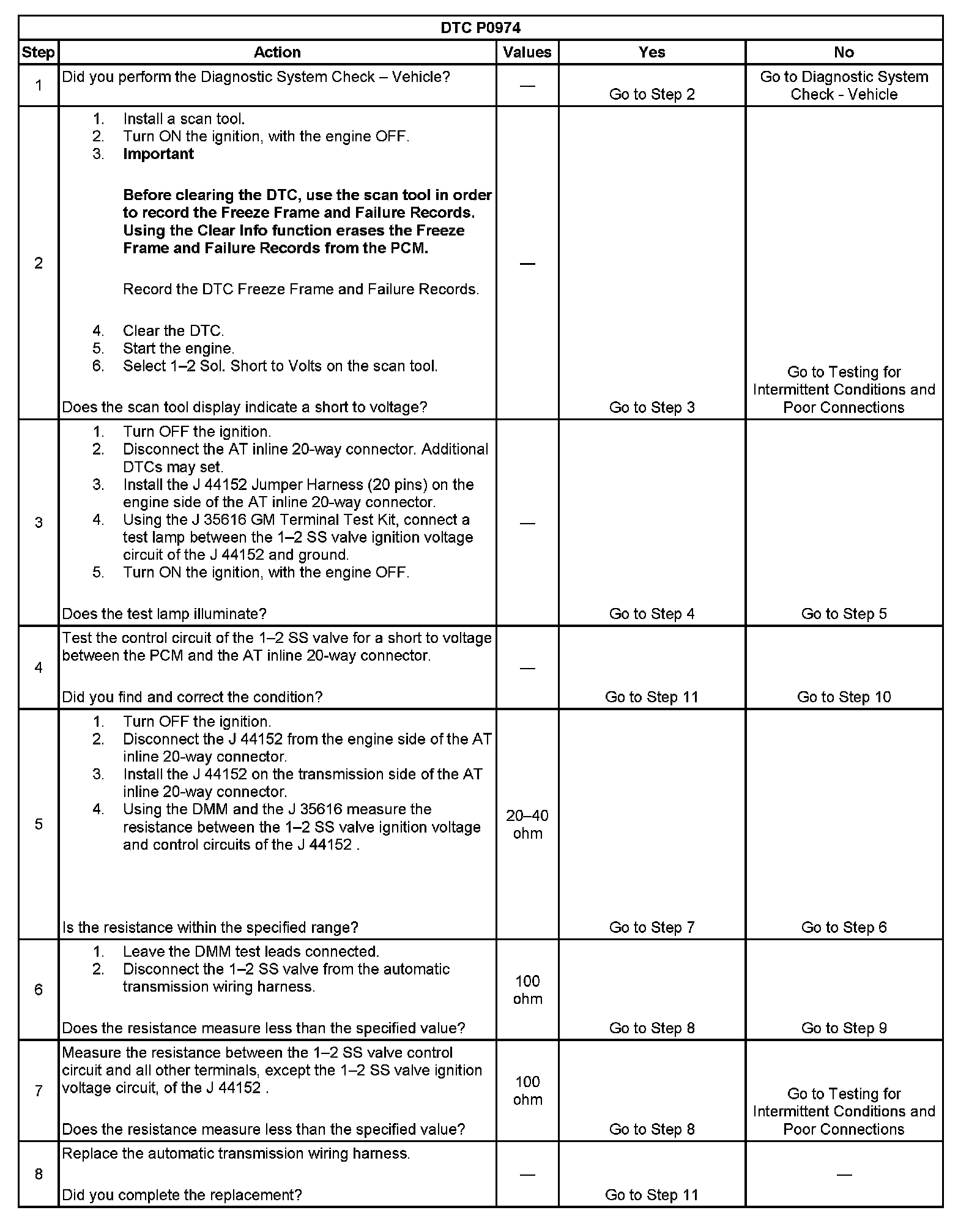 If the PCM detects a continuous short to voltage in the 1-2 SS valve circuit, then DTC P0974 sets. DTC P0974 is a type B DTC.