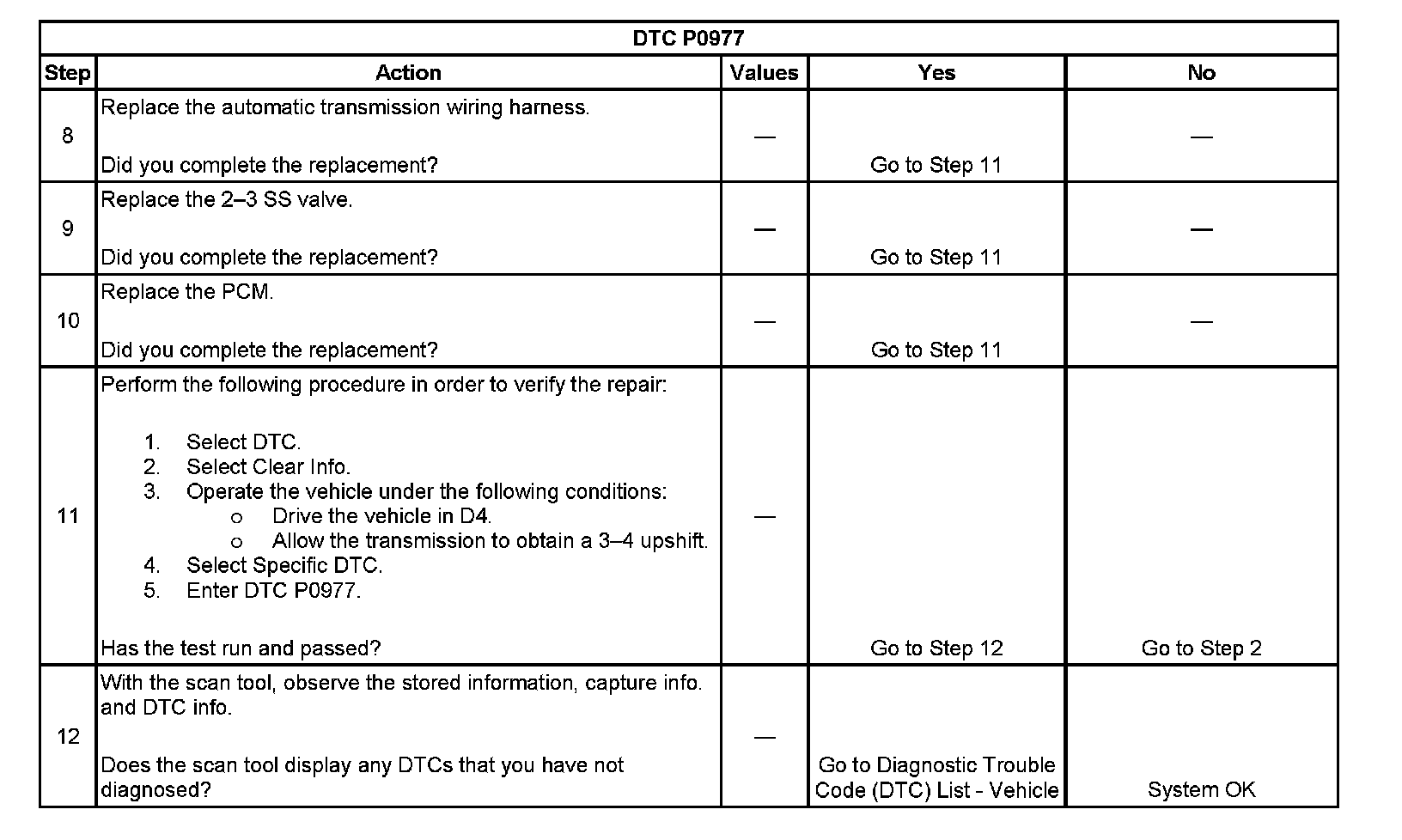 ^ The PCM stores DTC P0977 in PCM history.