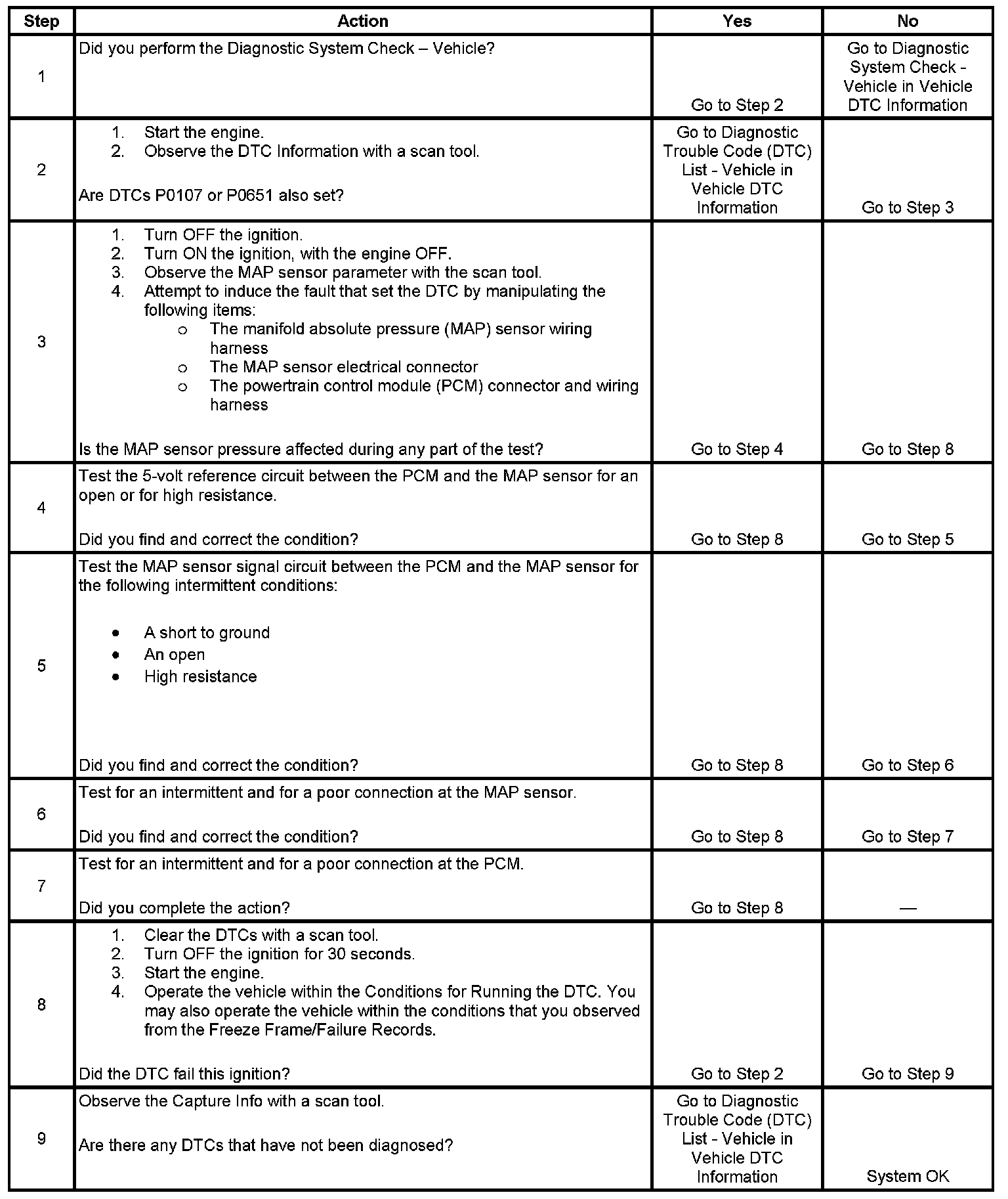 DTC P1107 Manifold Absolute Pressure (MAP) Sensor Circuit Intermittent Low Voltage