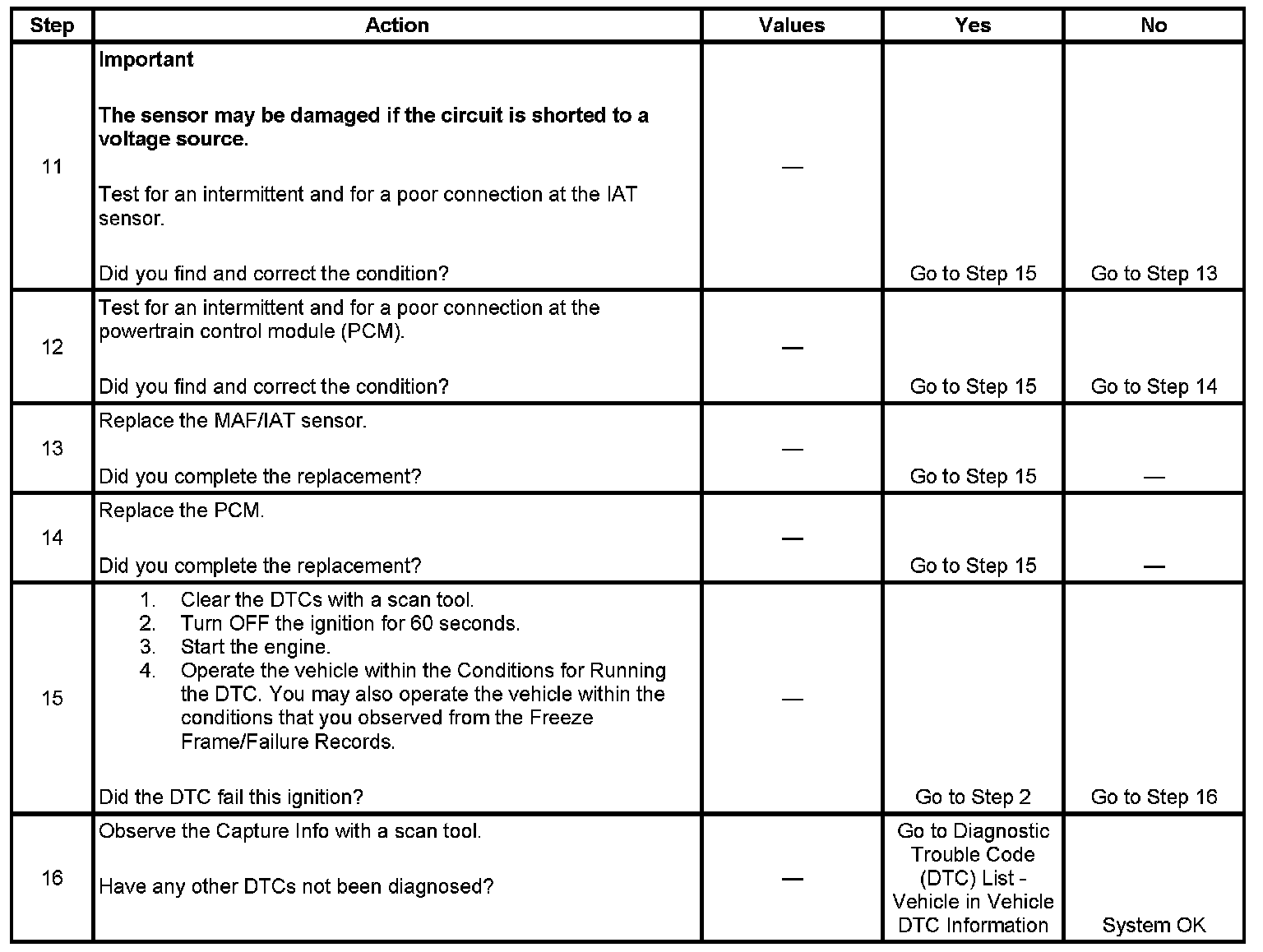 - A current DTC Last Test Failed clears when the diagnostic runs and passes.