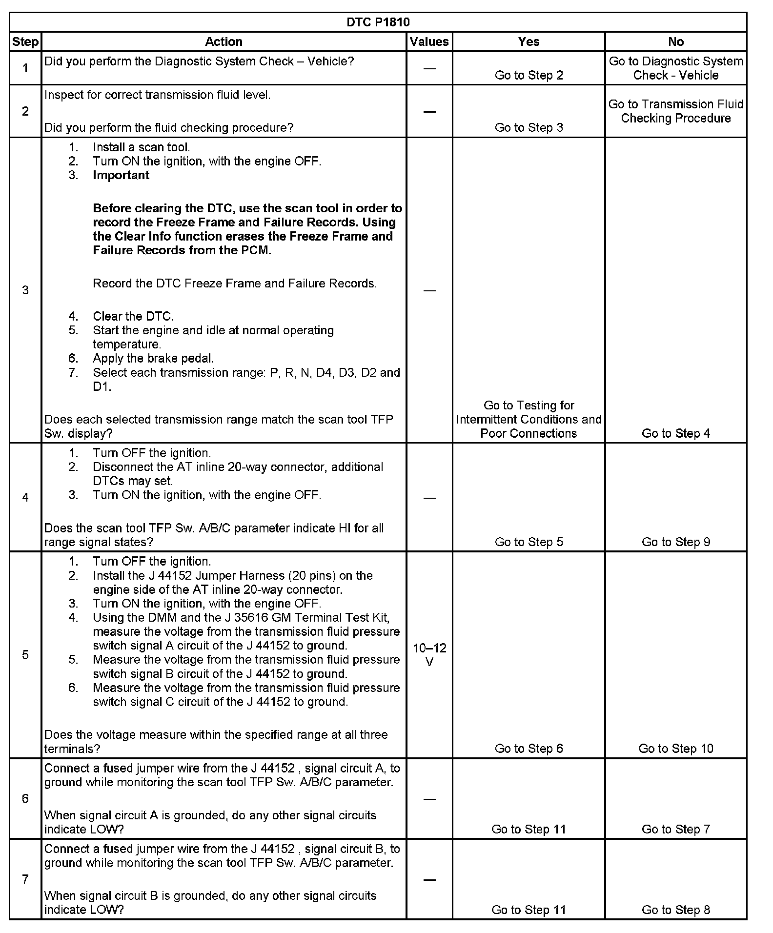 DTC P1810 Transmission Fluid Pressure (TFP) Position Switch Circuit