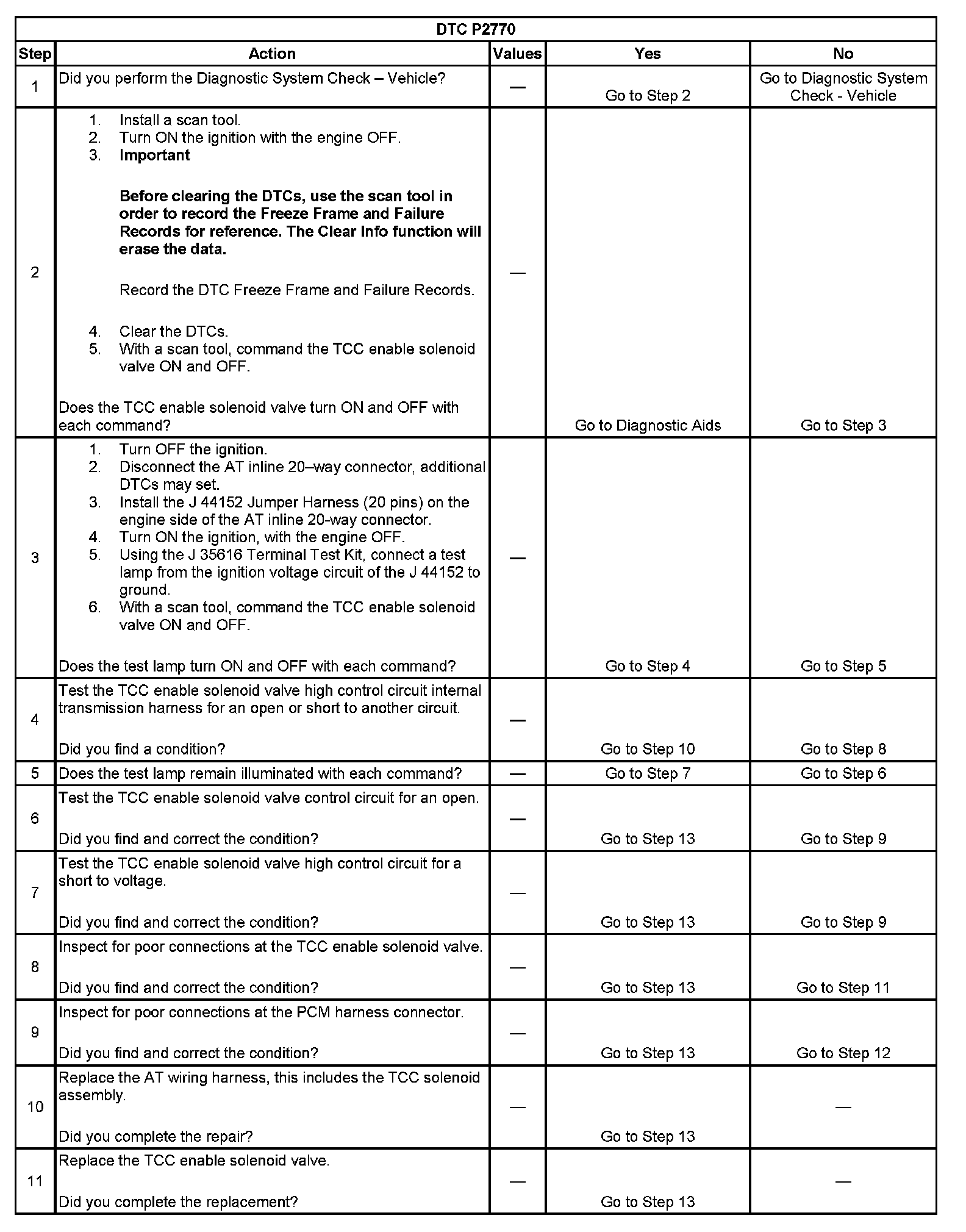When the PCM detects a short to voltage in the TCC solenoid valve circuit, then DTC P2770 sets. DTC P2770 is a type B DTC.