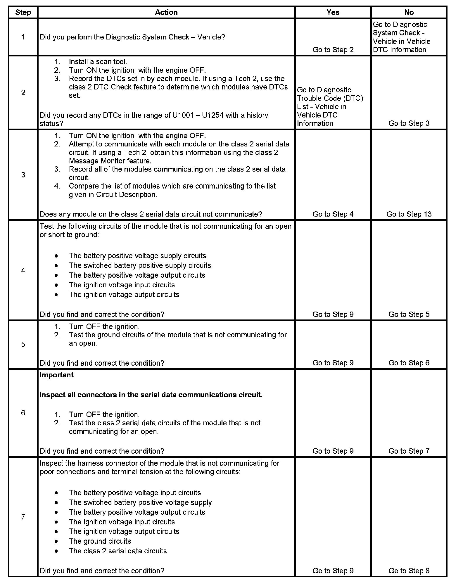 7. The module which was not communicating due to a poor connection to the class 2 serial data circuit may have set DTC U1001 - U1254 Lost Communications with XXX for those modules that it was monitoring.