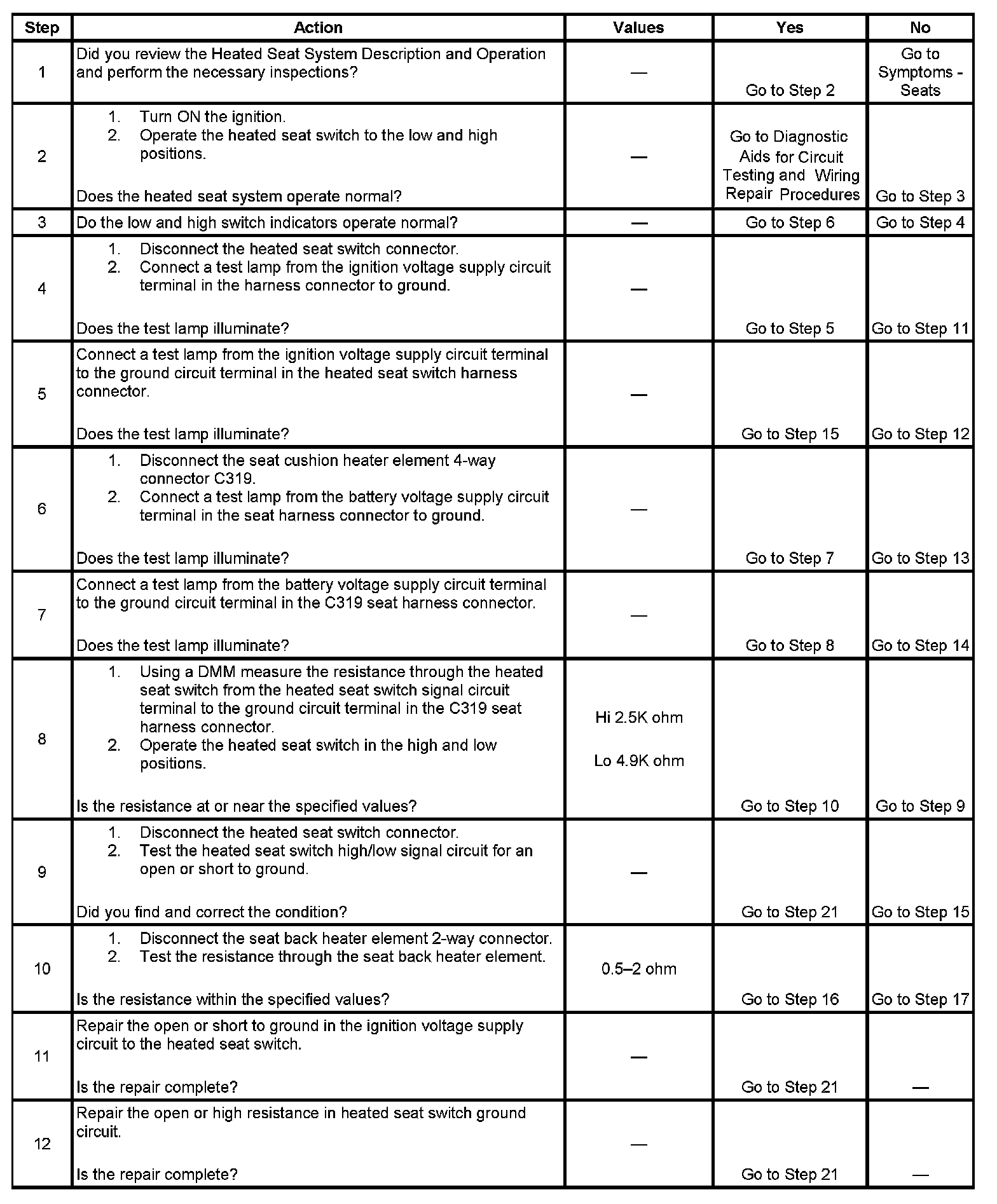 Heated Seat Inoperative - Driver