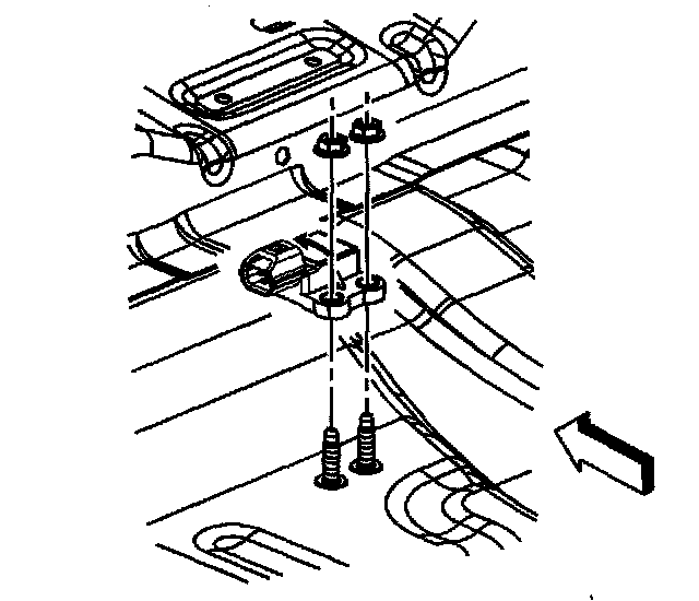 4. Remove the 2 nuts retaining the sensor to the floor panel.