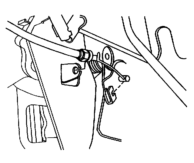 6. Remove the release cable from the lower dash panel.