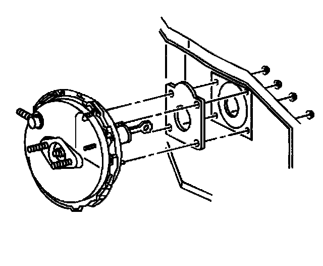 1. Install the brake booster in the bulkhead.