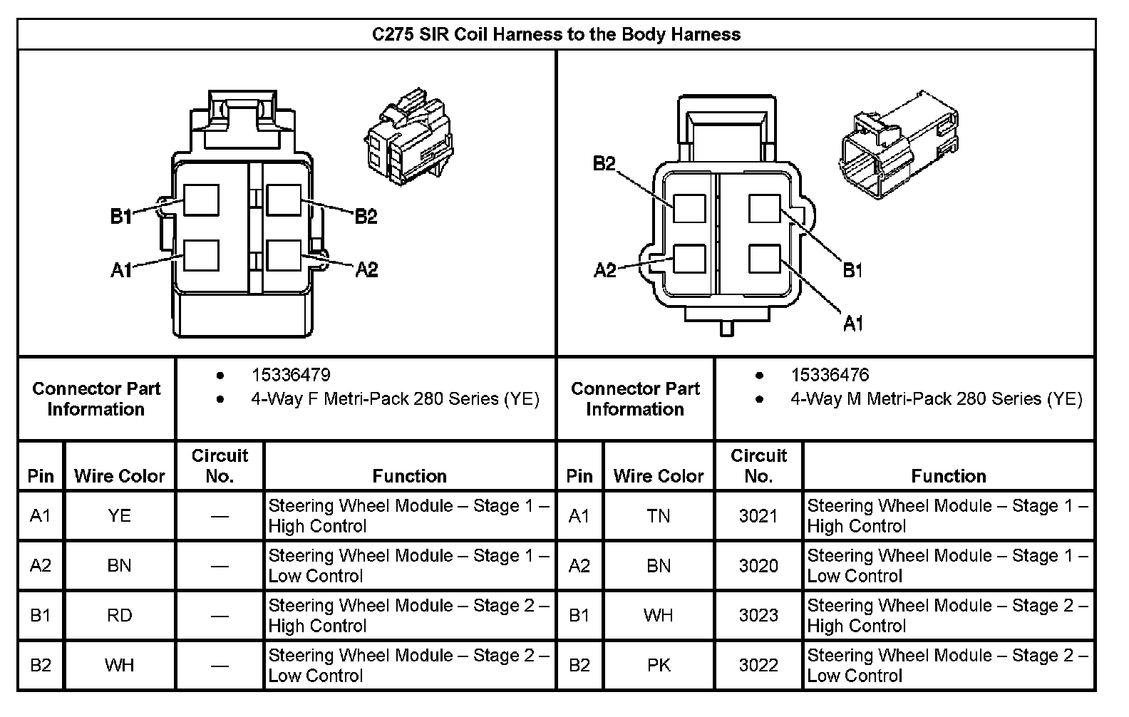 C275 SIR Coil Harness To The Body Harness: