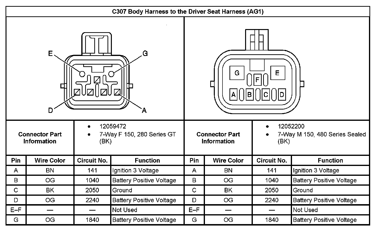 C307 Body Harness To The Driver Seat Harness (With RPO Code AG1):