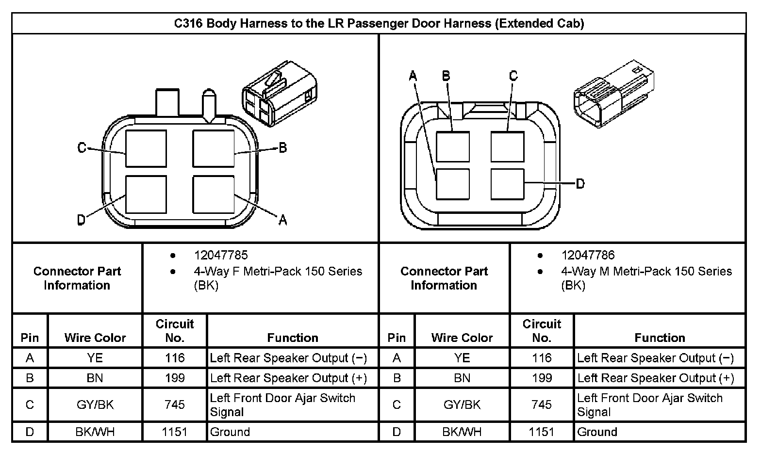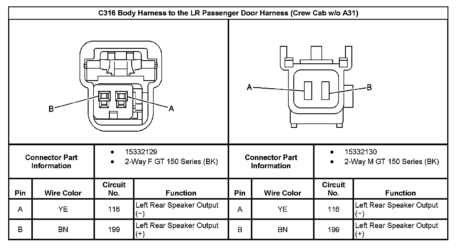 C316 Body Harness To The LR Passenger Door Harness (Crew Cab Without RPO Code A31):