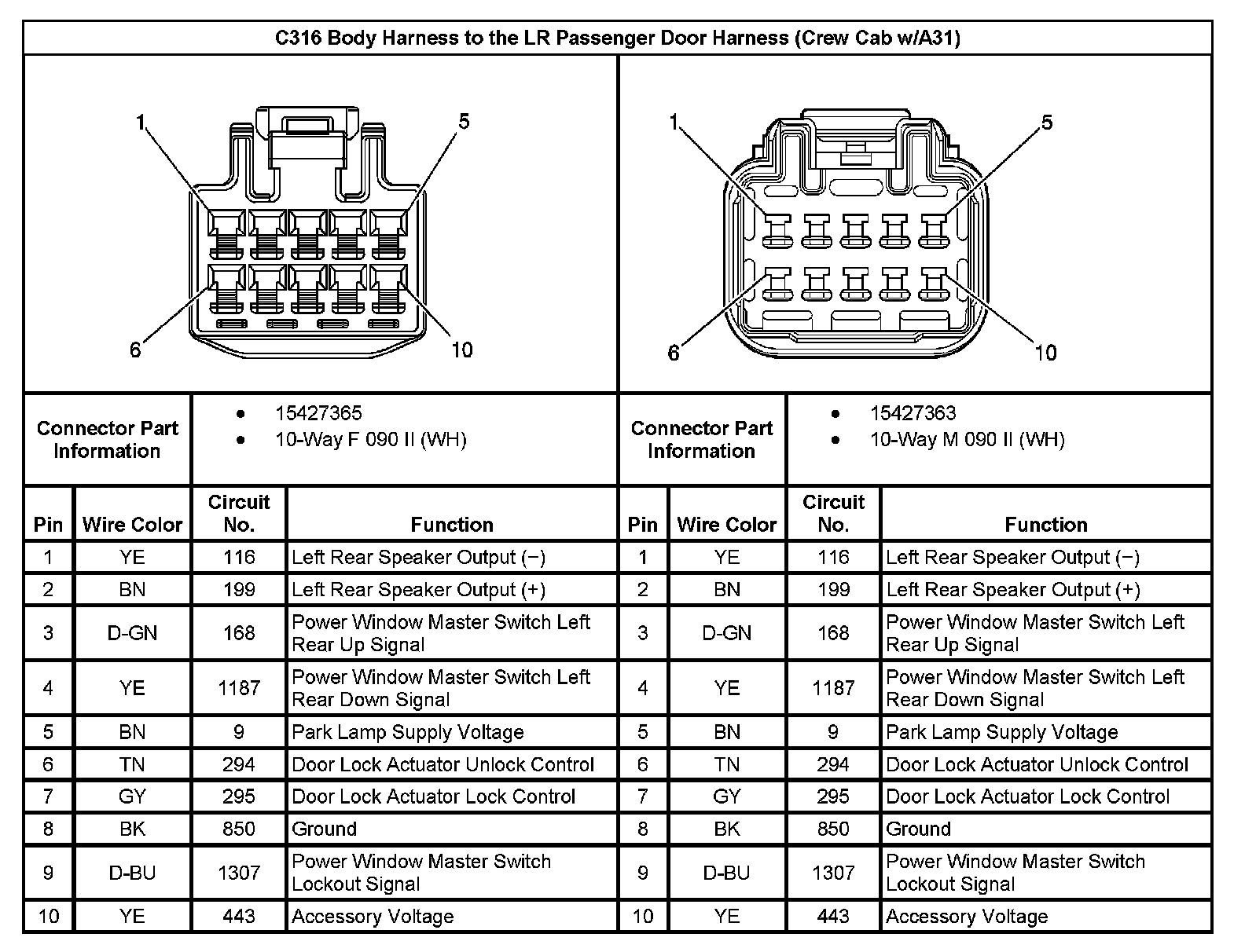 C316 Body Harness To The LR Passenger Door Harness (Crew Cab With RPO Code A31):