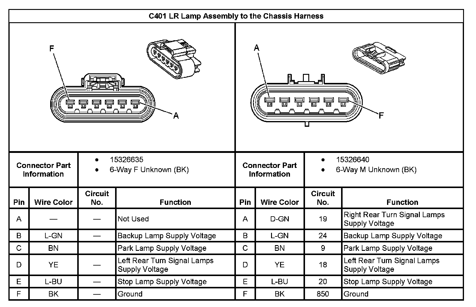 C401 LR Lamp Assembly To The Chassis Harness: