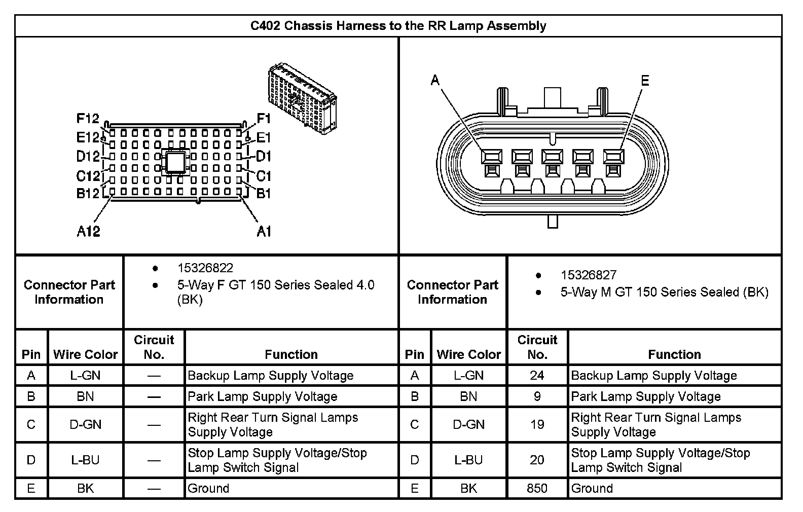 C402 Chassis Harness To The RR Lamp Assembly: