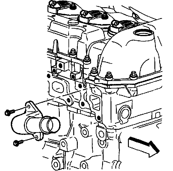 4. Remove the water outlet housing bolts.