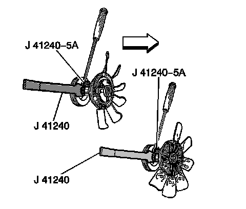 2. Install the J 46406 and the J 41240-5A to the fan clutch.