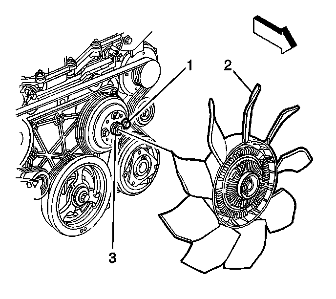 ^ Tighten the fan clutch nut clockwise to 56 Nm (41 ft. lbs.).