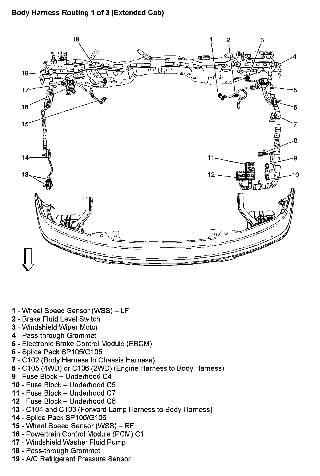 Body Harness Routing 1 Of 3 (Extended Cab):