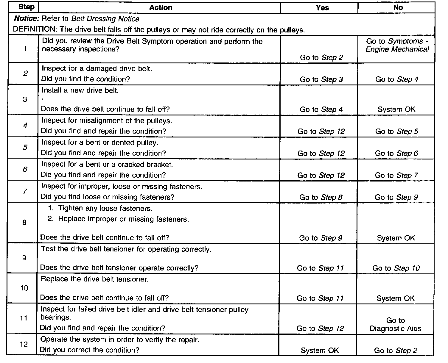 Drive Belt Falls Off DiagnosisDiagnostic Aids