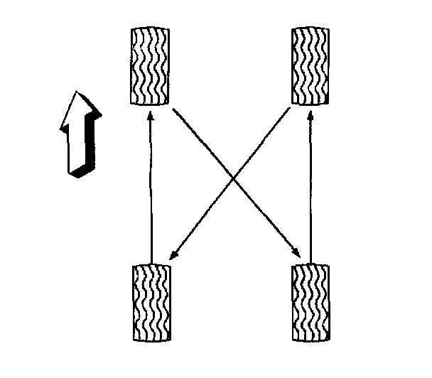 Tire RotationIn order to equalize wear, rotate the tires at the specified intervals. Also, rotate the tire and wheel assembly whenever you notice uneven tire wear.