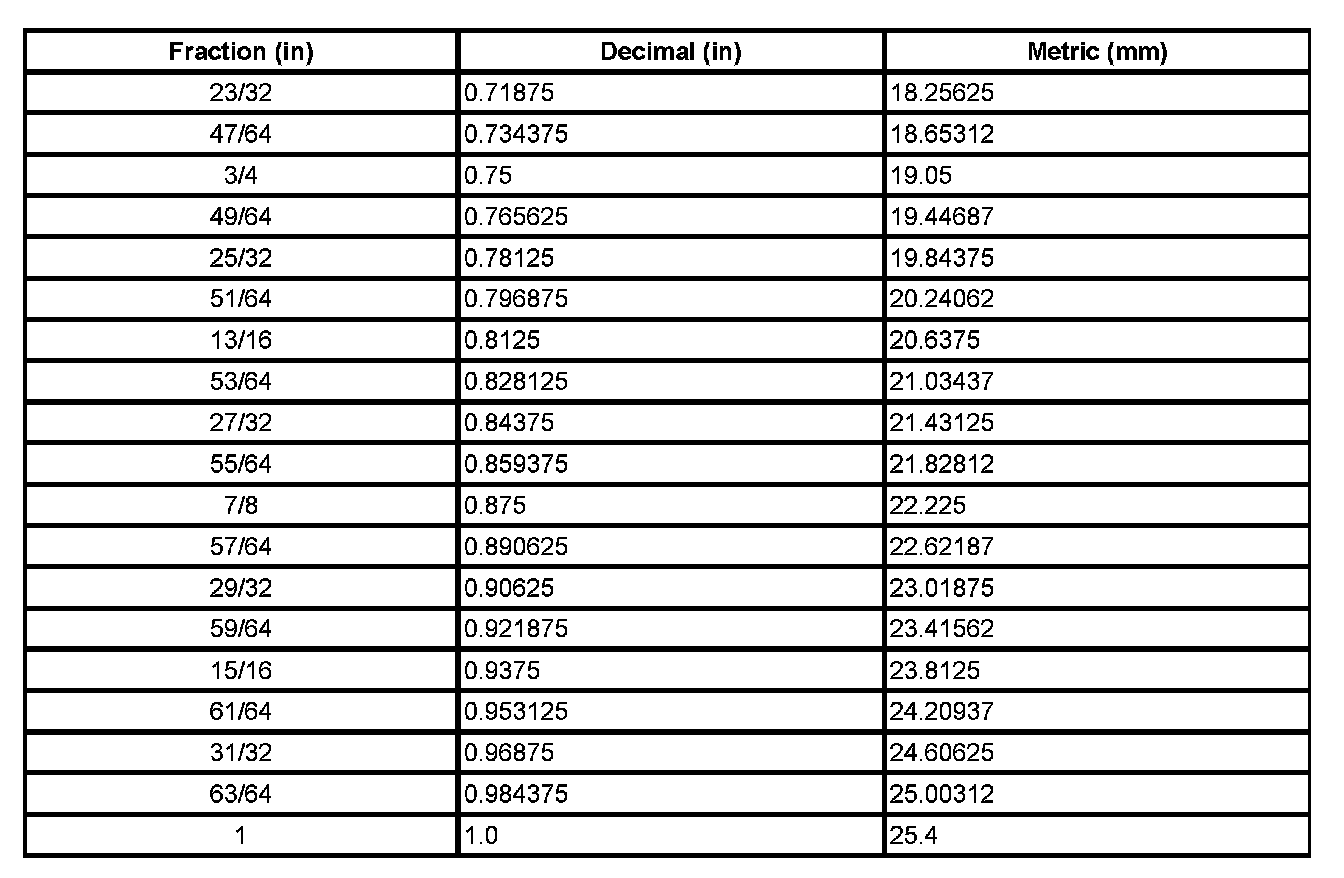 Equivalents - Decimal And Metric