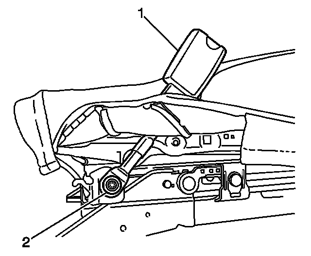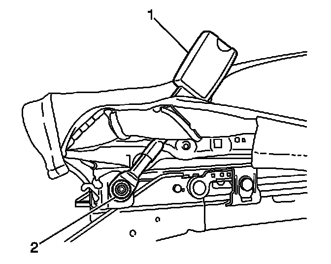 3. Remove the bolt (2) securing the seat belt buckle assembly (1) to the seat adjuster.