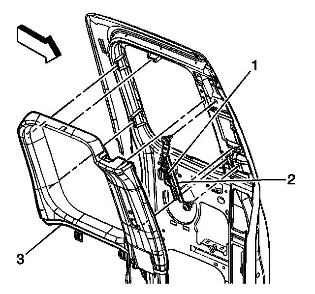 1. Install the 2 bolts securing the front seat belt shoulder adjuster (1) to the vehicle.