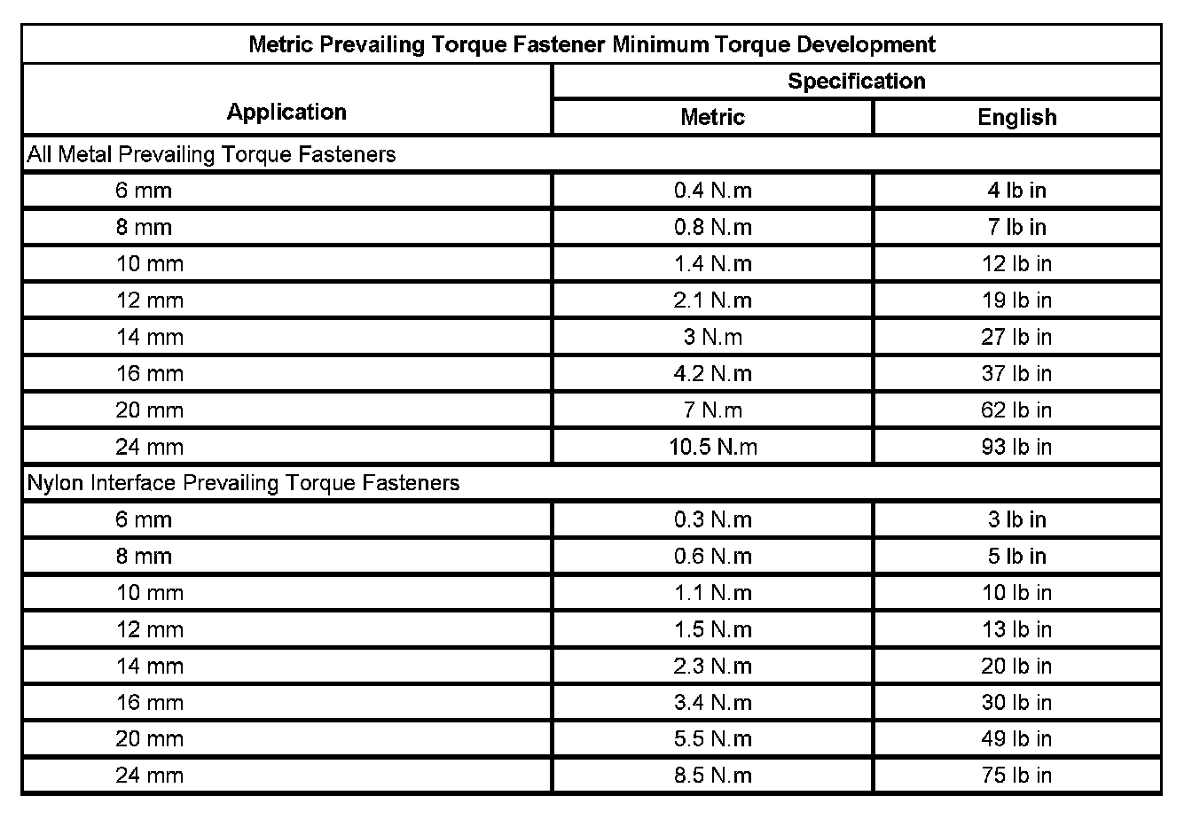 * The fastener develops the specified minimum torque against its counterpart prior to the fastener seating