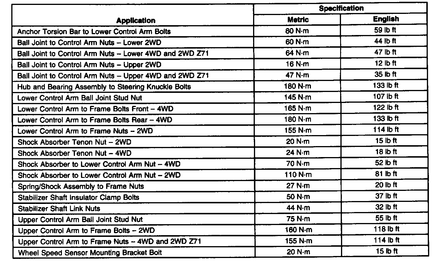 Fastener Tightening specifications