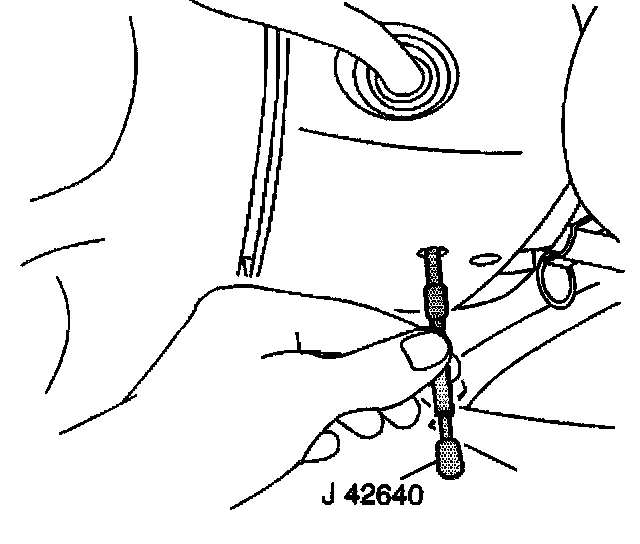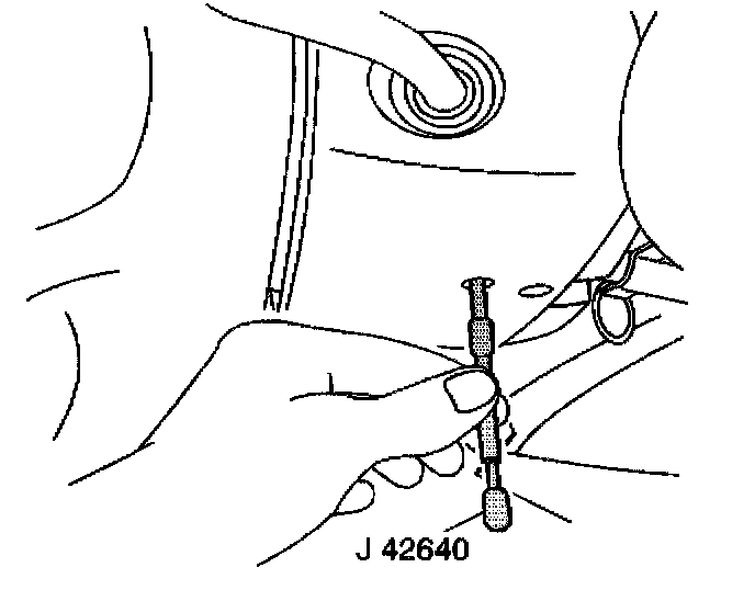7. Unlock the steering column by removing the J 42640 from the steering column lower trim cover access hole.