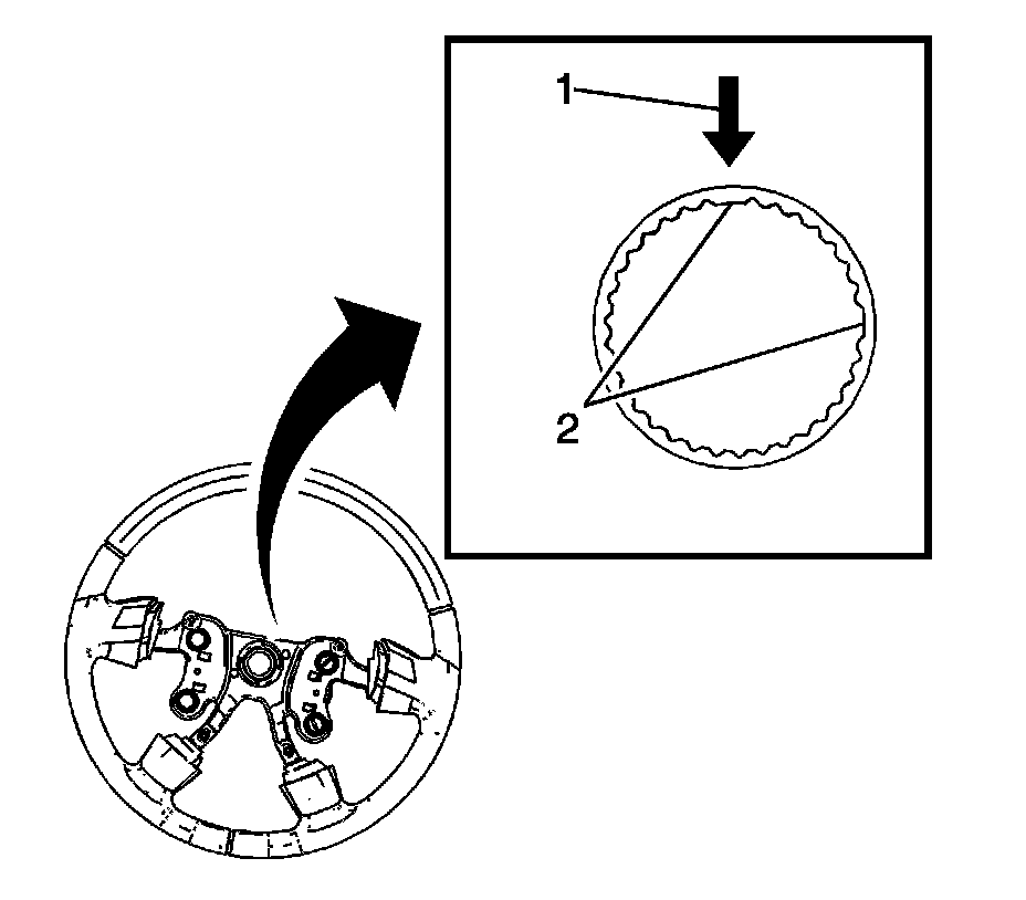 3 Ensure that proper tooth (2) alignment to the steering wheel and the steering shaft has been achieved.