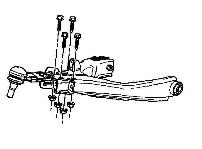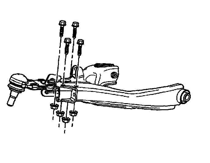 2. Remove the ball joint nuts and bolts from the lower control arm. Discard the nuts and bolts.