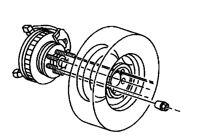 Notice: A torque wrench or J 39544 must be used to ensure that wheel nuts are tightened to specification. Never use lubricants or penetrating fluids on wheel stud, nuts, or mounting surfaces, as this can raise the actual torque on the nut without a corresponding torque reading on the torque wrench. Wheel nuts, studs, and mounting surfaces must be clean and dry. Failure to follow these instructions could result in wheel, nut, and/or stud damage.