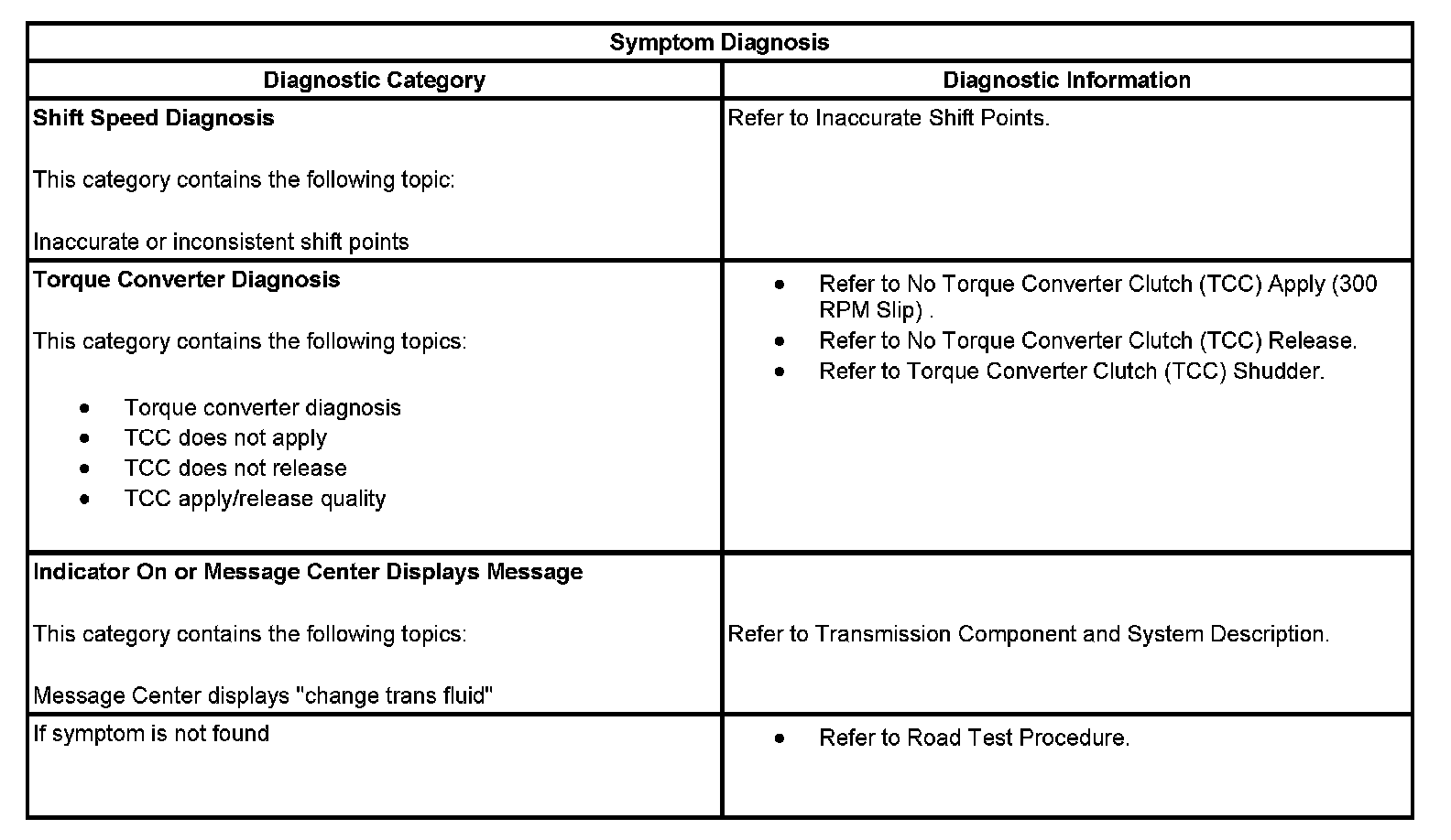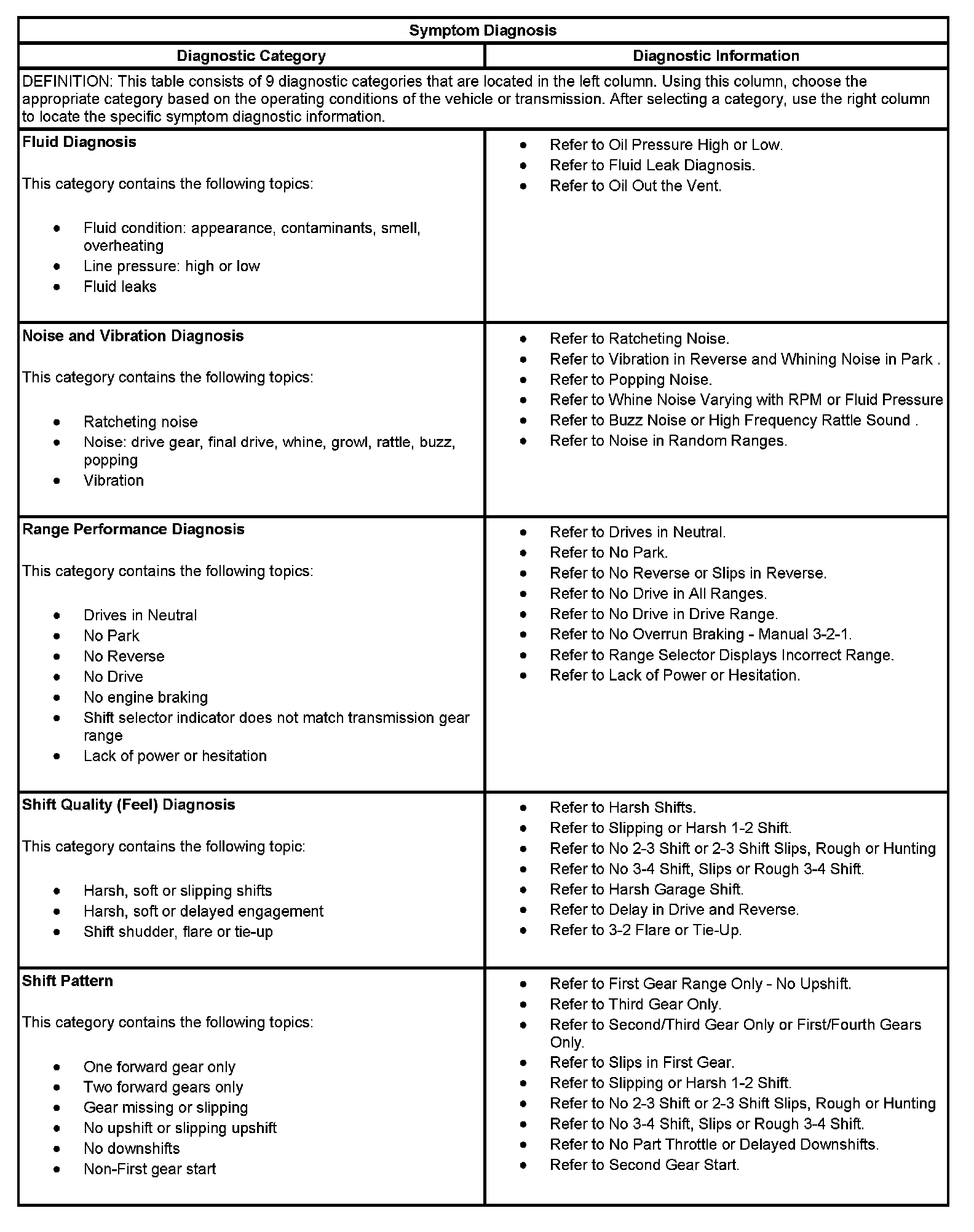 - Symptoms - Automatic Transmission
