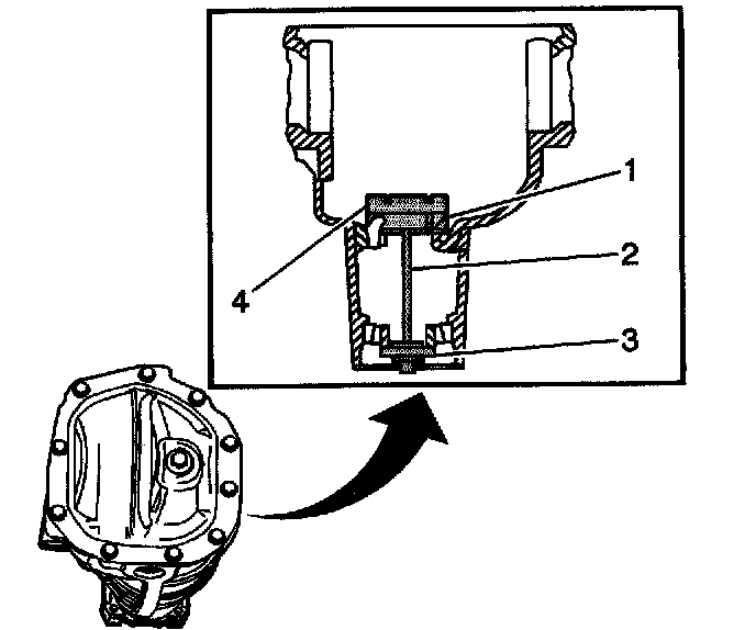 3. Assemble the J 21777-35 (1), the J 21777-43 (2), the J 21777-42 (3), and the J 23597-11 (4) into the axle housing as shown.
