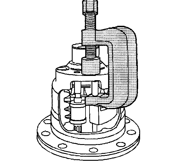 3. Remove the latching bracket assembly bushing using the J26252. To aid in the removal of the latching bracket assembly, turn the side gear as necessary to position the latching bracket assembly between two of the side gear teeth.