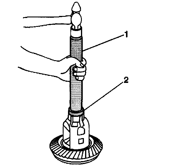 1.2. Install the J 45231 (2), and the J 8092 (1) onto the differential case bearing as shown.