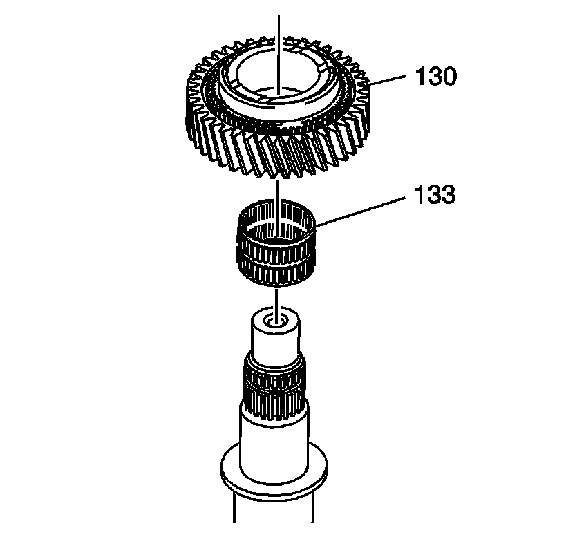 1. Install the 3rd gear bearing (130) and the 3rd gear (133) on the front of the output shaft.