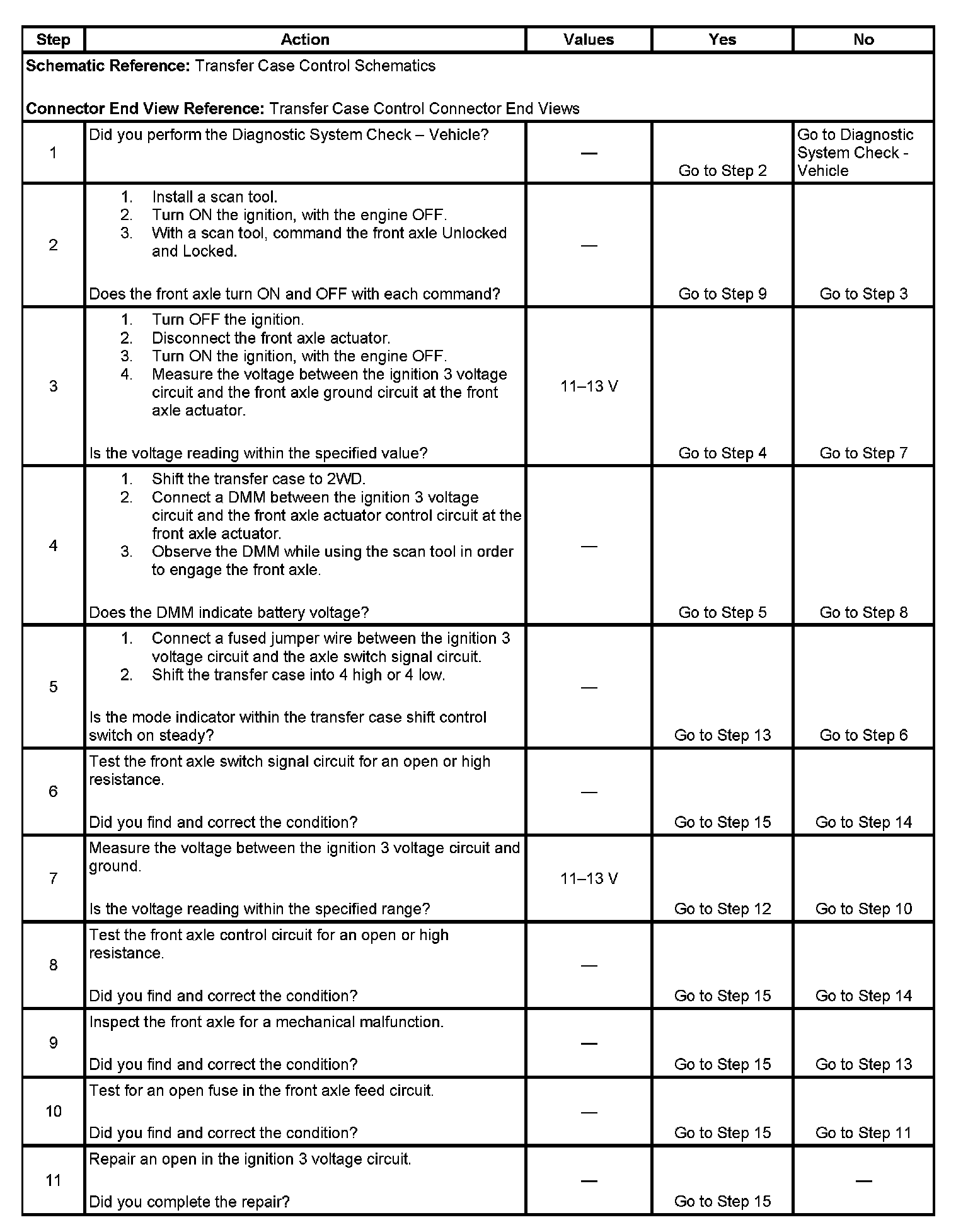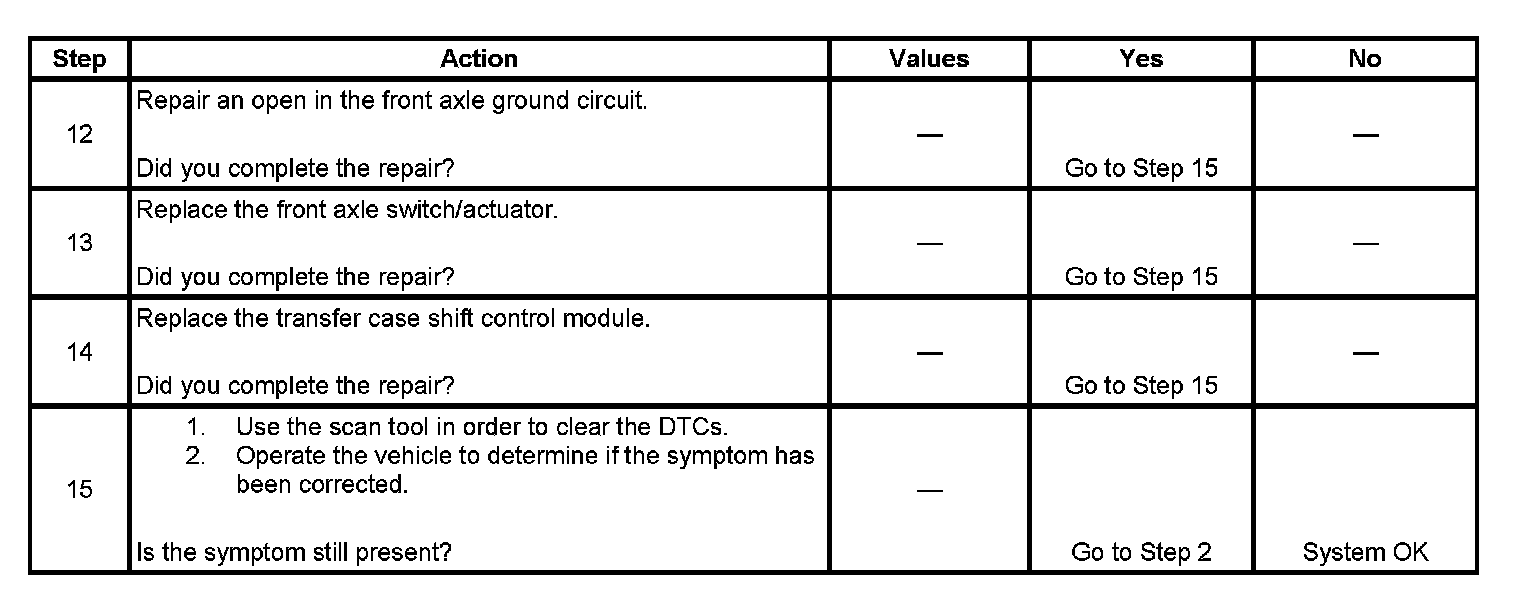 2. This step tests the electrical function of the front axle actuator and helps determine mechanical and electrical malfunctions.