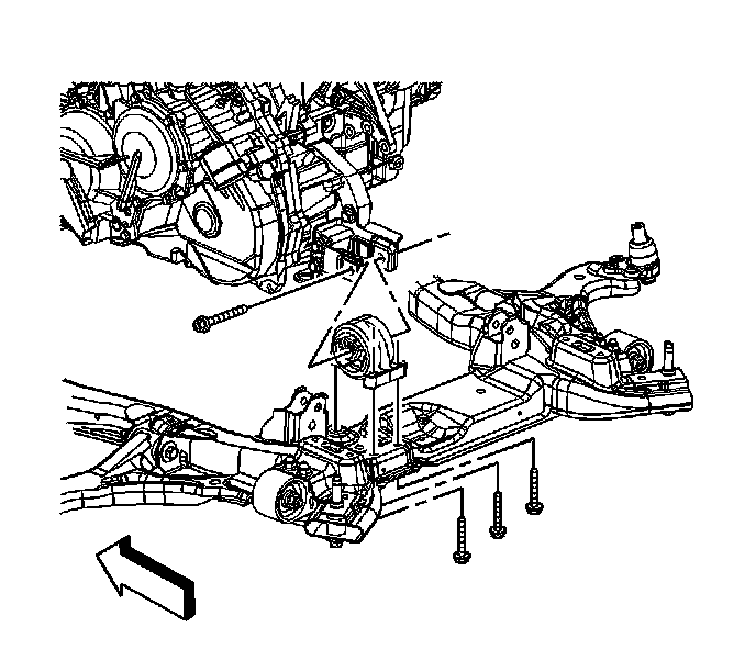 6. Remove the rear transaxle mount-to-frame bolts.