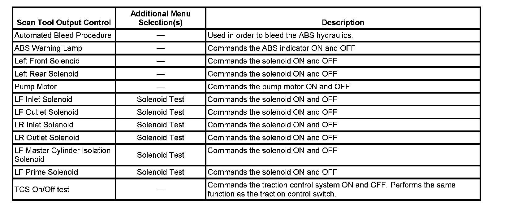 Scan Tool Output Controls: