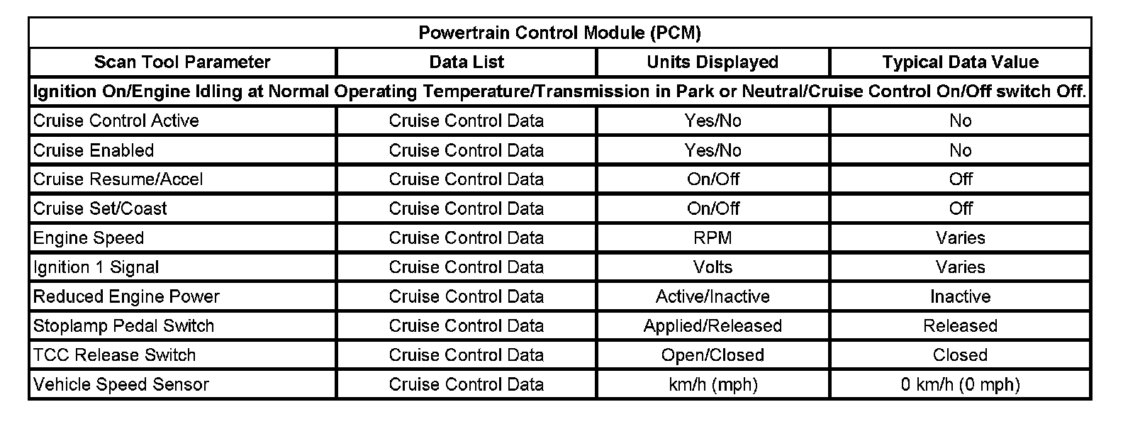Scan Tool Data List