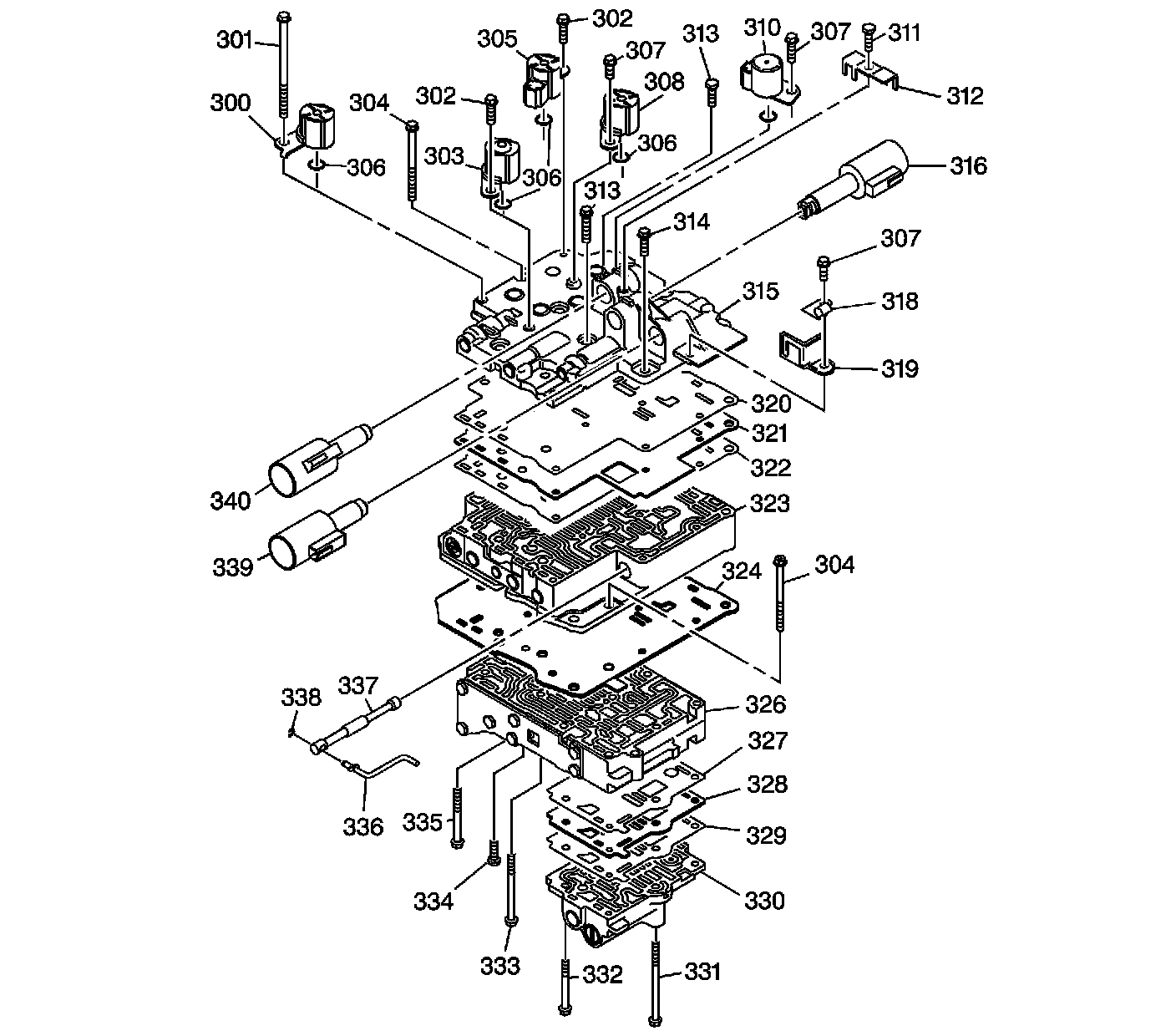 324 - Middle Control Valve Body Assembly to Rear Control Valve Body Spacer Plate and Gasket Assembly