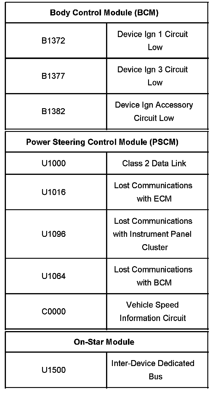 The purpose of this bulletin is to inform the technician of DTCs that may be stored in history for the Body Control Module (BCM), Power Steering Control Module (PSCM) and/or On-Star Module.