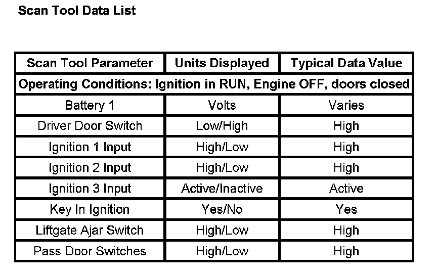 Scan Tool Data List: