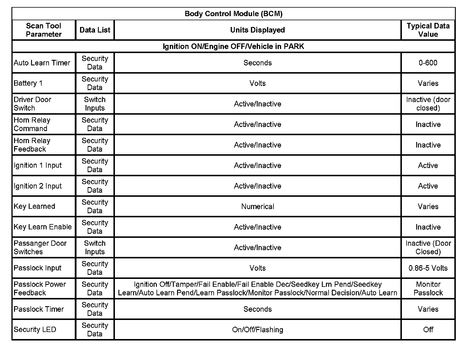 Body Control Module (BCM):