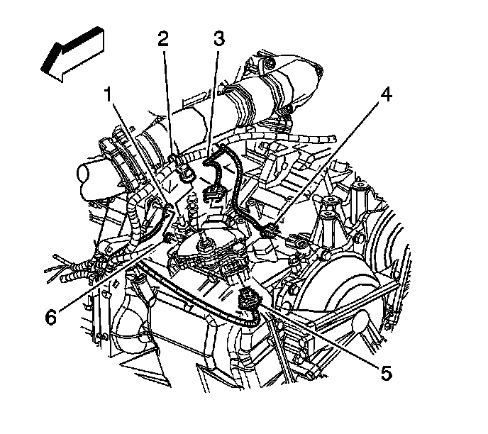 4. Disconnect the electrical connectors (3, 5) from the transaxle range switch.