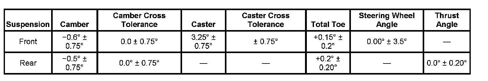 Wheel Alignment Specifications