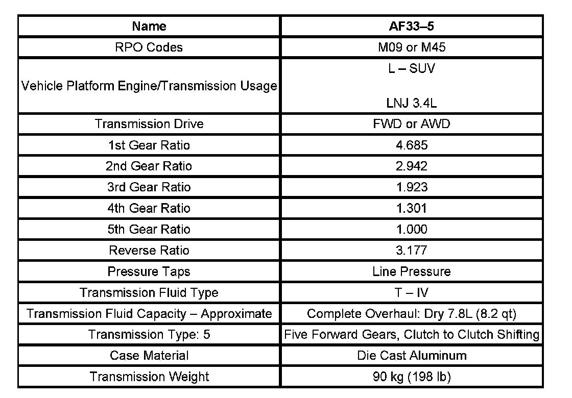 Transmission General Specifications